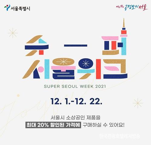 [È£ÅÚ°ü±¤·¹Á®½Å¹®´º½º=ÀÌÁö¿ø ±âÀÚ] ¼­¿ï½Ã´Â 12¿ù1ÀϺÎÅÍ 22ÀϱîÁö 6°³ ´ëÇü ¿Â¶óÀμîÇθô¿¡¼­ ¼Ò»ó°øÀÎ »óǰÀ» ÃÖ´ë 20% ÇÒÀÎ ÆÇ¸ÅÇÏ´Â '½´ÆÛ¼­¿ïÀ§Å©'¸¦ °³ÃÖÇÑ´Ù°í ¹àÇû½À´Ï´Ù.