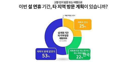 °æ±âµµ°¡ Áö³ 15ÀÏ µµ¹Î 1,000¸íÀ» ´ë»óÀ¸·Î ½Ç½ÃÇÑ Äڷγª19 °ü·Ã ±ä±Þ ¿©·ÐÁ¶»ç¿¡ µû¸£¸é ¼³ ¿¬ÈÞ ±â°£¿¡ Ÿ Áö¿ªÀ¸·Î °íÇ⡤ģÁö ¹æ¹®À̳ª ¿©Çà °èȹÀÌ ÀÖ´ÂÁö¿¡ ´ëÇØ¼´Â 53%°¡ °èȹÀÌ ¾ø´Ù°í ´äÇß½À´Ï´Ù.