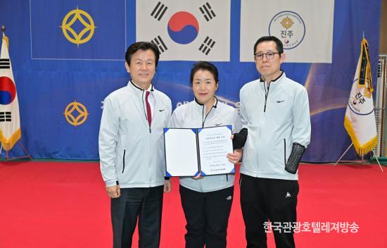 À̳¯ °á´Ü½Ä¿¡´Â ÁøÁֽà ¼±¼ö´ÜÀ» °Ý·ÁÇϱâ À§ÇØ ÁøÁÖ½Ã¿Í ÁøÁÖ½ÃÀÇȸ °ü°èÀÚ¸¦ ºñ·ÔÇØ Àå¾ÖÀδÜü¿Í ½Ã¼³ °ü°èÀÚ, Àå¾ÖÀÎüÀ°È¸ ÀÓ¿ø, °¡¸Í ´ÜüÀå µî 180¿© ¸íÀÌ Âü¼®ÇÑ °¡¿îµ¥ ÁøÁֽà ¼±¼ö´ÜÀÇ ¼±ÀüÀ» ±â¿øÇÏ°í °Ý·ÁÇß´Ù.