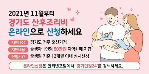 [È£ÅÚ°ü±¤·¹Á®½Å¹®´º½º=¹èÁöÀ± ±âÀÚ] °æ±âµµ°¡ Ãâ»ê°¡Á¤¿¡ 50¸¸ ¿øÀ» Áö¿øÇÏ´Â ¡®°æ±âµµ »êÈÄÁ¶¸®ºñ Áö¿ø»ç¾÷¡¯ Á¢¼ö ¹æ¹ýÀ» ¿Â¶óÀÎÀ¸·Î È®´ëÇÕ´Ï´Ù. °æ±âµµ »êÈÄÁ¶¸®ºñ Áö¿ø»ç¾÷Àº ž Áö 12°³¿ù À̳» Ãâ»ý¾Æ°¡ ÀÖ´Â °¡Á¤À» ´ë»óÀ¸·Î Ãâ»ýÀϰú ½ÅûÀÏ ¸ðµÎ °æ±â¡¦