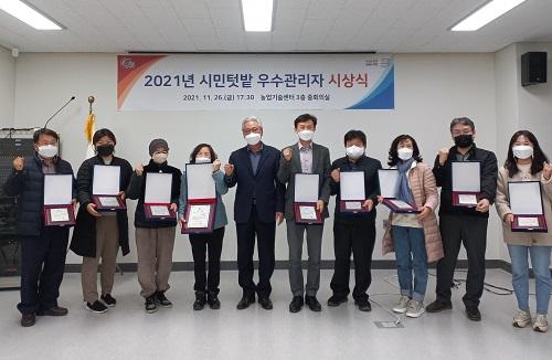 [È£ÅÚ°ü±¤·¹Á®½Å¹®´º½º=Á¤ÁöÀ± ±âÀÚ] ÁøÁֽô Áö³­ 26ÀÏ ¿ÀÈÄ 5½Ã 30ºÐ ³ó¾÷±â¼ú¼¾ÅÍ È¸Àǽǿ¡¼­ ¡®2021³â ½Ã¹ÎÅÔ¹ç ¿ì¼ö°ü¸®ÀÚ ½Ã»ó½Ä¡¯À» °³ÃÖÇß½À´Ï´Ù. À̹ø ½Ã»óÀº 6°³¿ù°£ ¾ö°ÝÇÑ ½É»ç¸¦ °ÅÃÄ ½Ã¹ÎÅÔ¹çÀ» ¼º½ÇÇÏ°Ô °ü¸®ÇÑ 10¸íÀ» ¼±¹ß¡¤½Ã»óÇÏ´Â °ÍÀ¸·Î, ¿ì¼ö¡¦